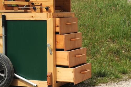 The tool stands are easy movable on rough terrain with there big wheels,