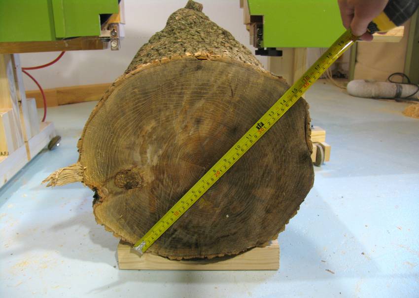 This chunk of log is 38 cm, or about 15" in diameter. I figured my sawmill