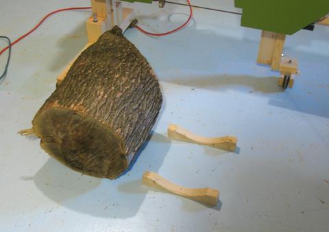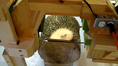 I had to be careful with the first few cuts. The log was barely heavy enough to hold in place by gravity. A longer log would have more weight.