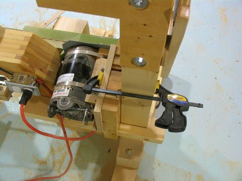 But then I had the idea of clamping the bandsaw frame to the sawmill frame together with a bar clamp. That pretty much solved the problem, and I didn't bother running the blade guides against the log after that.
