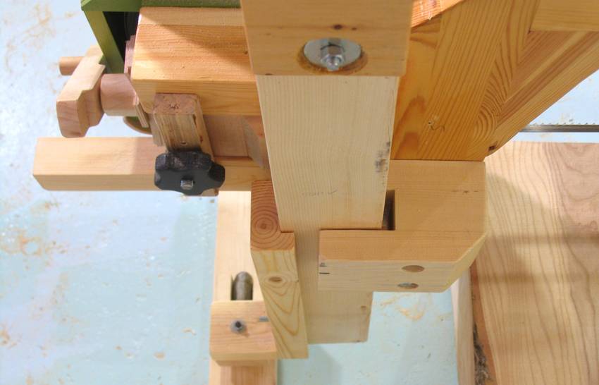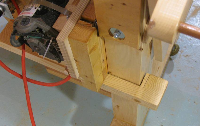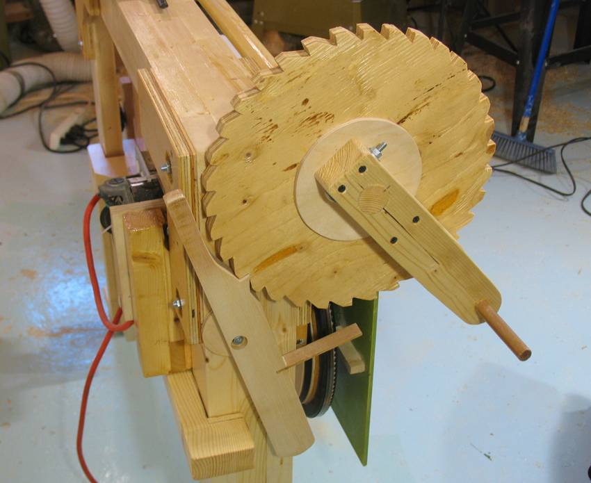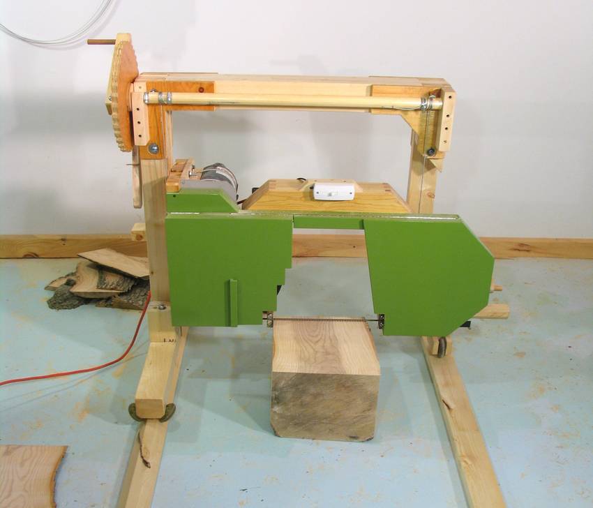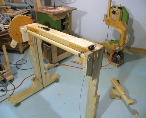 The sawmill is made from pieces of 2x4 glued together in three layers.