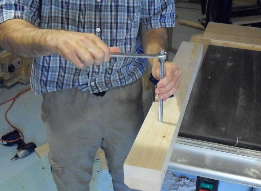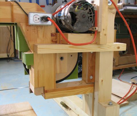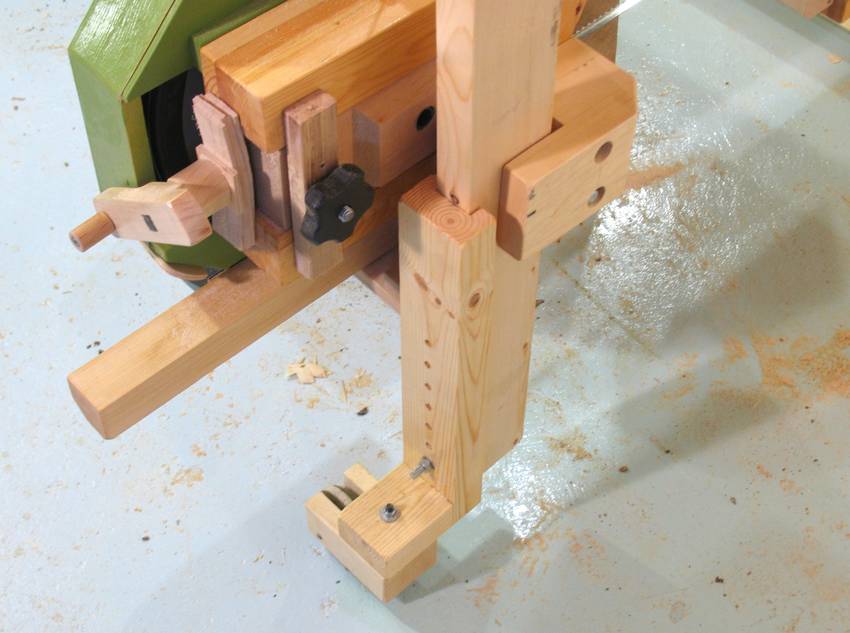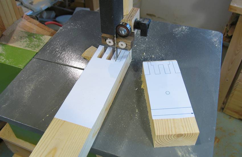 to the bandsaw. Two dowels (not visible in photo)