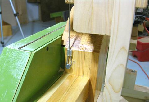 to winch the bandsaw up and down, but then switched to steel cable. The advantage