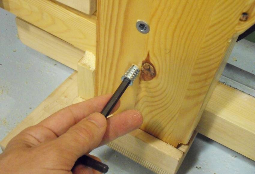 The corner joints of the frame are reinforced with pieces of plywood.