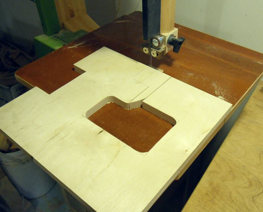 Cutting out the sub-table shape on the bandsaw