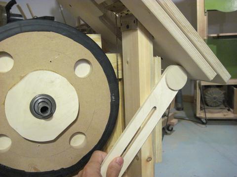 My first idea for locking the table tilt position was to make a link as shown.