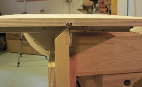 The table consists of two layers of 3/4" (19 mm) Baltic birch plywood. The bottom layer has