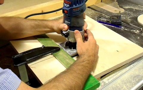 Here's cutting the ledge for the table insert with a router. The green square