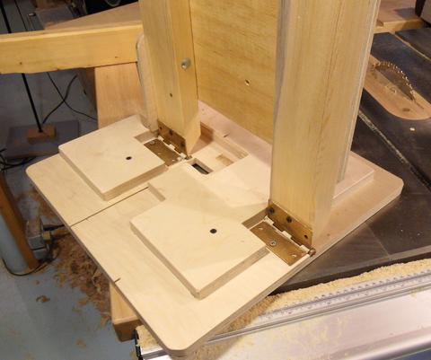 But for this bandsaw, I decided to use hinges for tilting the table.