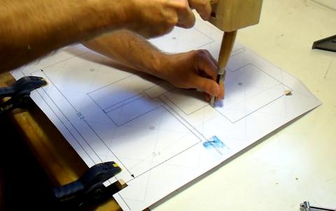 I'm using a small chisel to punch through the template at the corners to