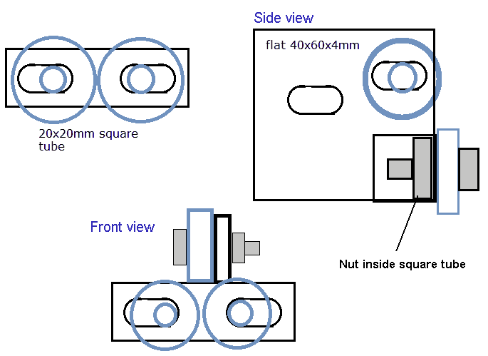 There was no other reason for making them from these materials other than I had them on hand. You can easily assemble the guides from 2 L brackets and a flat piece for example, not requiring any welding. Attached is a rough sketch made in MSpaint. I tried to take a picture with my phone, but the "objective lens" on that thing can't focus on anything closer than about a meter, so there is no point in sending those. I can borrow a proper DSLR camera and will send a few pictures once I get ahold of it.