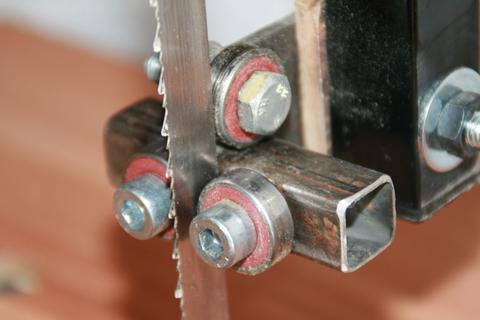 Blade guides are made with 6 bearings in total, simply because I have a drawer full of them for servicing electrical motors.