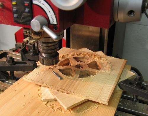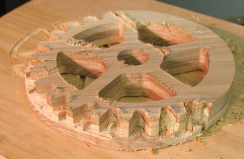 hard to be secure. Not hard enough, apparently. I bandsawed a circle around the unfinished gear