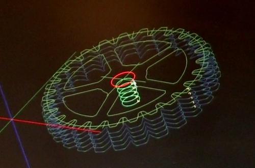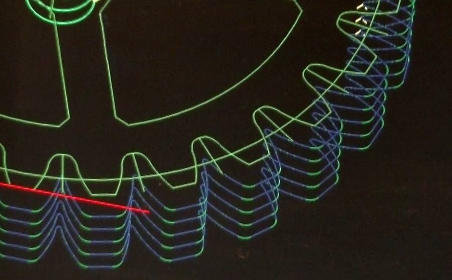 Even though the gear is a flat shape, it is nonetheless milled in 3D. Michael chose to mill the