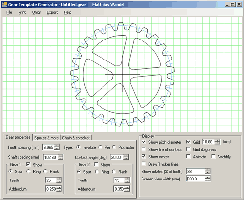 We also set the dedendum of the gear a bit deeper (by setting the "other gear" addendum larger in the gear program) so that the space between the gears would be a bit deeper.