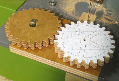 and figured that would make a nice gear, especially with spokes (which can't be cut on the bandsaw)