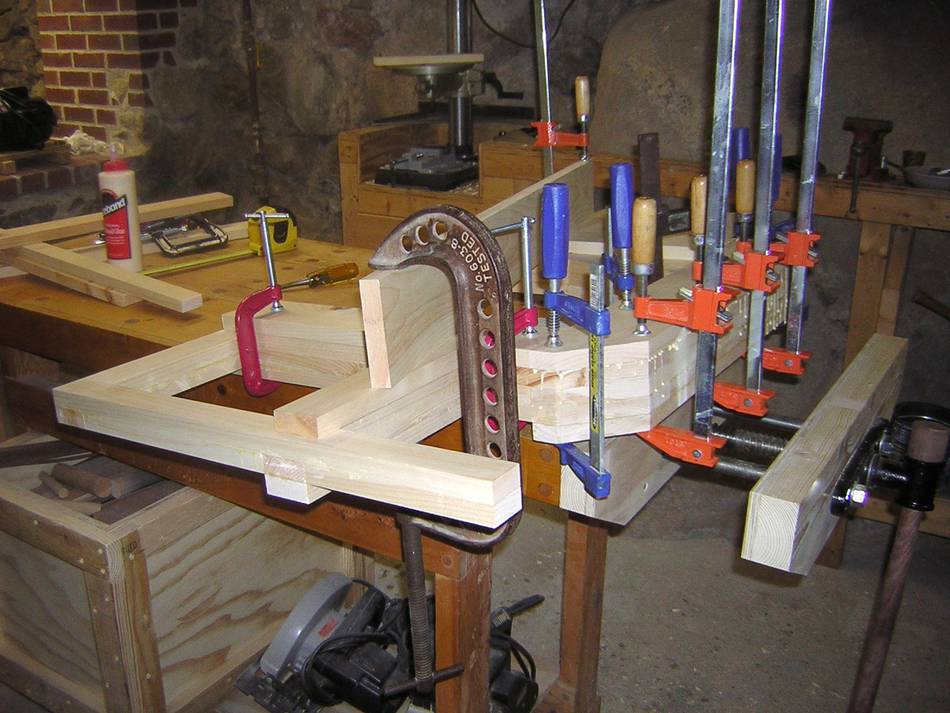 On every layer, I clamped a board across the frame in attempt it as straight as possible.