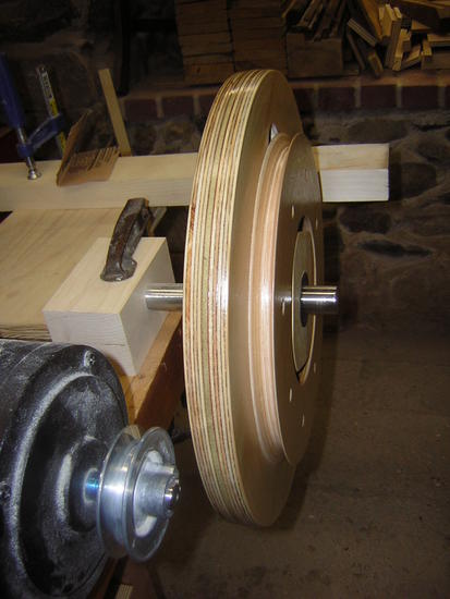 Baltic Birch for the finished pulley. I put the crown on the wheels
