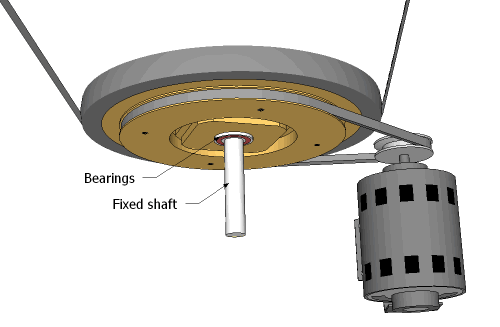 The bottom wheel in my new design spins on a fixed shaft, much like the top wheel does.