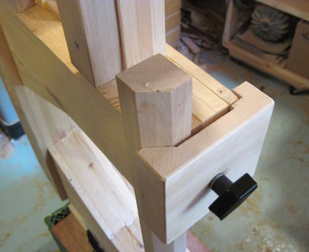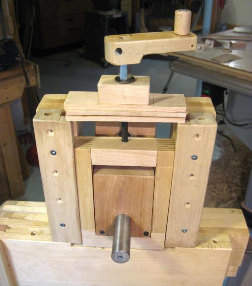 I had been thinking about making a C-shaped wooden beam for the frame of my second bandsaw. My first thought was to join some pieces of beam together with my screw advance box joint jig, but that would make it necessary for people to build that jig before building the bandsaw. My next idea was to form the beam by laminating individual boards together. That way, I could overlap them at the corners and joints, making for a very rigid frame. You can click on this image, or any other image in this article to get a larger view.