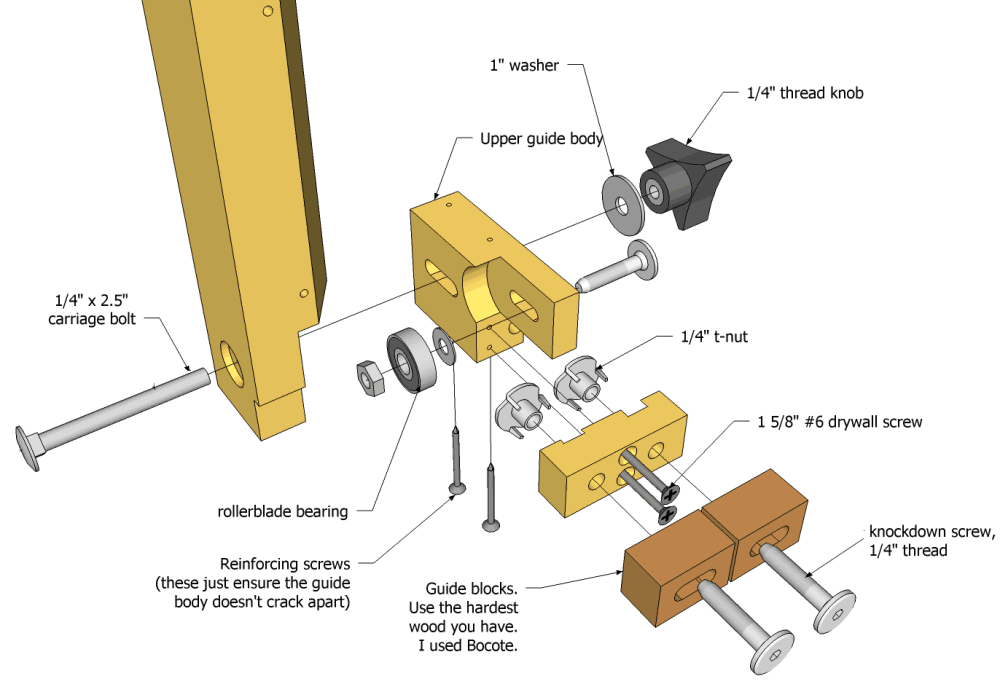 This drawing shows how the blade guides go together. The top and bottom blade guides