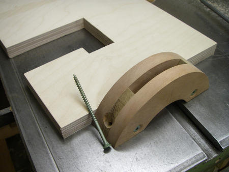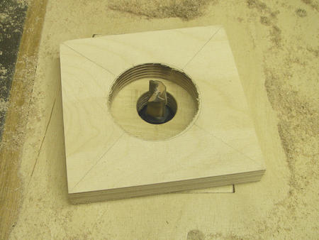 [Matthias]: I find this an interesting technique for cutting out the circle. Straightforward enough, but there is the risk that the resulting hole is not round and may distort the outside ring of the bearing. This could cause the bearing to wear faster and/or run rough. Gordon reports that he hasn't had any problems with the bearings. Realistically, the bearings don't get stressed even close to their rated load or speed, so it's probably OK. But a circle cutter on the drill press would probably be better.