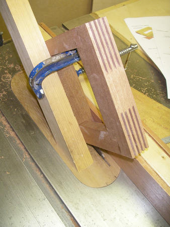 [Matthias]: A tenon jig would be ideal for this sort of cut. Clamping another piece of wood next to it to stabilize it is a good idea if you don't have a tenon jig. Though I would recommend clamping it to a much larger piece of wood laying flat against the table and fence to the right of the work piece