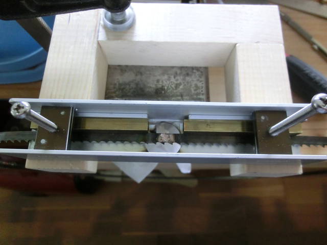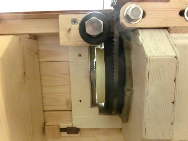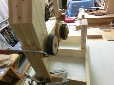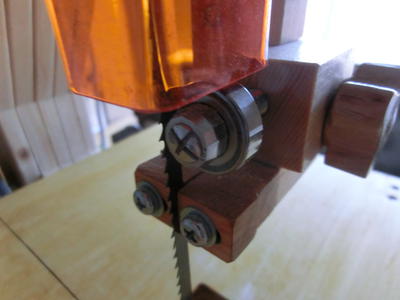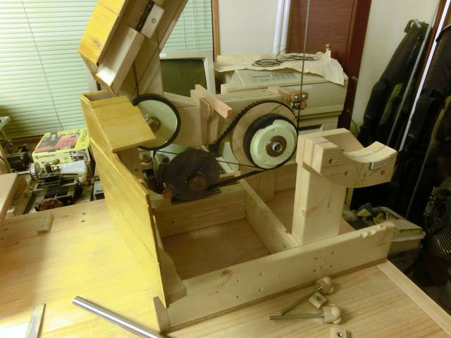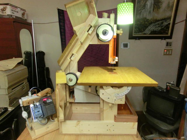 Mikiono (大野 幹), from Japan sent me some pictures of his three wheeled bandsaw. Mikiono translated from Japanese using Google Translator. But English and Japanese ae structurally very different languages, so Google translator isn't the best when dealing with Japanese, so I'm paraphrasing what he sent. "There is a speed controller because the motor is for a metal lathe." "Blades break sometimes. Because I was an engineer, a permissible blade bend radius of blade was assumed to be 50mm. When the blade broke, I was able to repair it using silver-alloy brazing." Matthias comments: Blade breakage is often a problem with three-wheeled bandsaws with their relatively small wheels. The blade may bend to a fairly tight radius without permanent deformation, but if the blade is bent tens of thousands of times, even if only bent by half as much, a phenomenon called metal fatigure will often cause the blade to crack and break. See also: