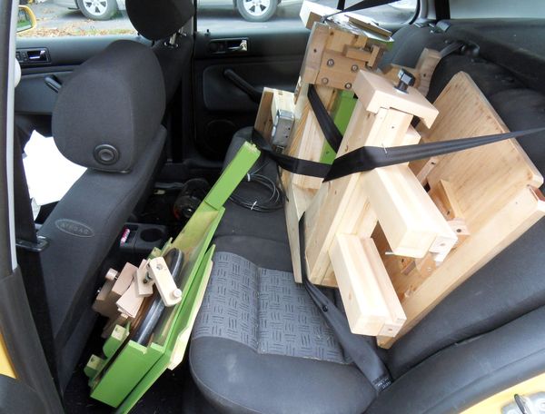 The whole bandsaw on the back seat. I put the bandsaw stand in the trunk.