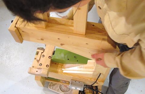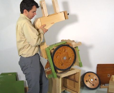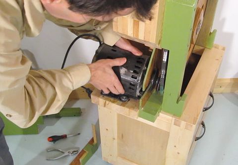 With the covers removed, the top wheel mount and wheel just slide out the top. The wooden