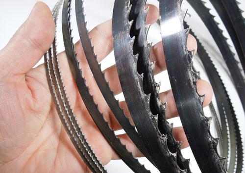 Some people prefer really wide blades for resawing, but for my purposes, 3/4" has always been wide enough. Even 1/2" wide blades have enough beam strength for resawing if sufficiently tensioned. The 3/4" wide blade on the right is the one I used for cutting up a log. Though I had previously cut up a short log with just a 1/2" 3 TPI blade. With just a 1 HP motor on the saw, but a very sturdy tensioning mechanism, lack of motor power was a bigger limitation than beam strength of the blade.