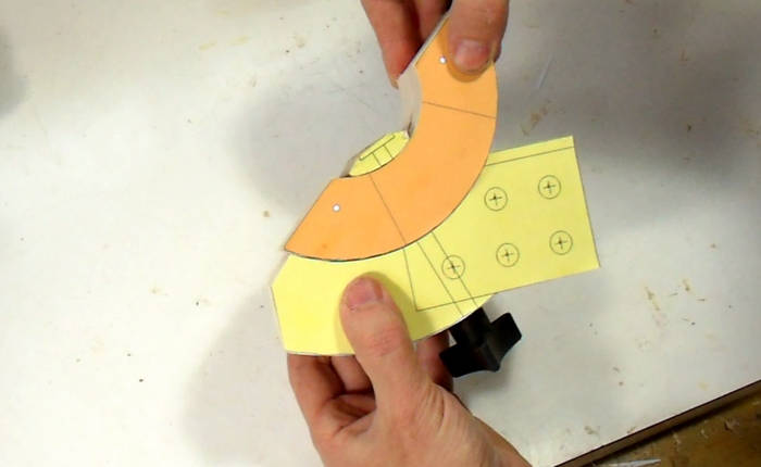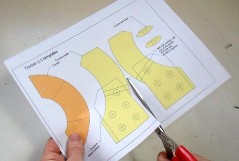 I start by cutting out the trunion templates from the 16" bandsaw plans, leaving about 3mm of margin all around the templates.