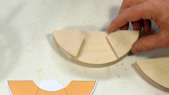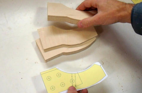 After the plywood layers are glued, the template is glued onto the