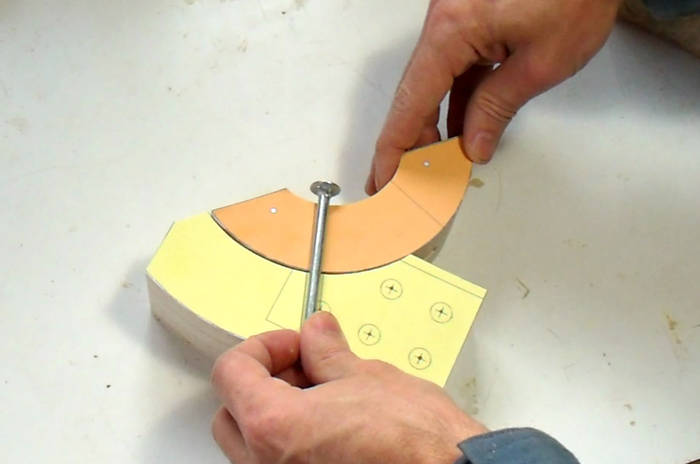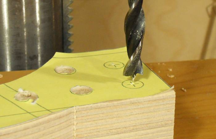 The awl-punched holes really help to guide the point of a brad point drill bit, even