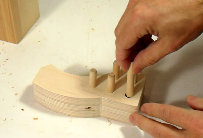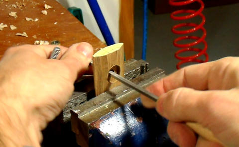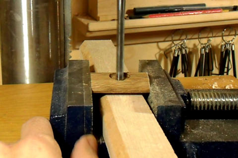 This process works very accurately for closed grain woods. For woods such as ash or oak, the awl will often move to the side as it follows the grain. The same is true for some soft woods, though you should be using hardwood for this part.