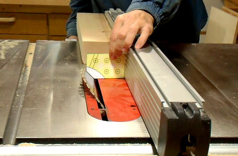 Checking the blade and fence position for cutting the bevel on the trunnion
