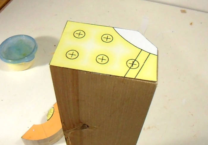 I glued the template to the end of the beam for marking where to punch the holes.