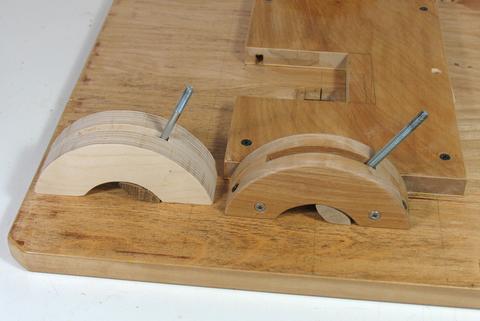 The trunnion cradles are made of three layers. The middle layer is 1/4" (6mm) or slightly