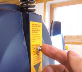 jam nut on the screw sticking out of the bottom left of the table, and twist the