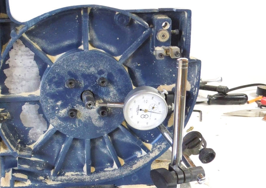 With the wheel removed, checking the shaft. The shaft had .001" variation to it,