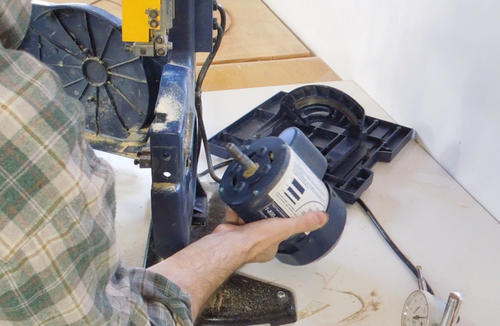 Like many cheap bandsaws, this bandsaw is a direct drive bandsaw. With a 1750 RPM motor directly driving a 7 1/2" wheel, this makes for a blade speed that is much faster than ideal. But direct drive eliminates pulleys and belts, so I assume it's done for cost savings.