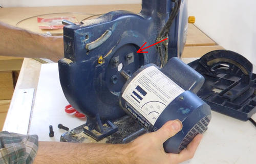 Next, undoing the four cap screws that hold the motor, then the motor