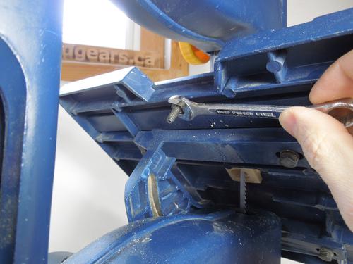 A silly design aspect of the saw is that the top and bottom guides need