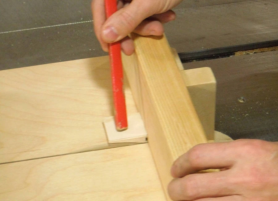 The ledge around the insert hole is about 2.5 mm deep, so first I made an insert out of plywood of that thickness. but that insert was too light and sometimes came out on its own. So I made a new insert out of 10 mm plywood. I cut a rabbet around the edge of it to make it fit in the shallow ledge.