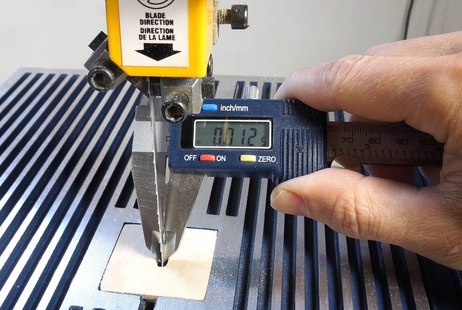 These small bandsaws use very thin blades. This blade measures only about .012" (I read a different number in the video, but I wasn't measuring as carefully). That's only half as thick as the blades for typical 14" or larger bandsaws.