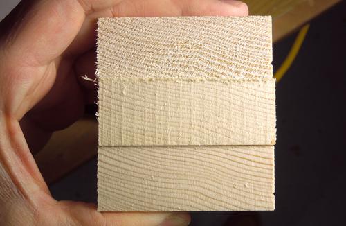 At left, the top piece was cut on my table saw with a good blade, middle piece was