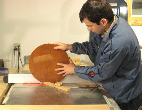 on my lathe to turn the V-groove, I chose to use the table saw to cut it
