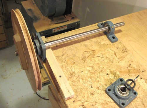 The lower wheel for my bandsaw experiment was fixed on the shaft, but the