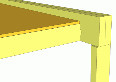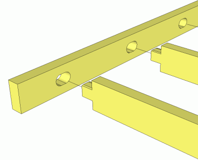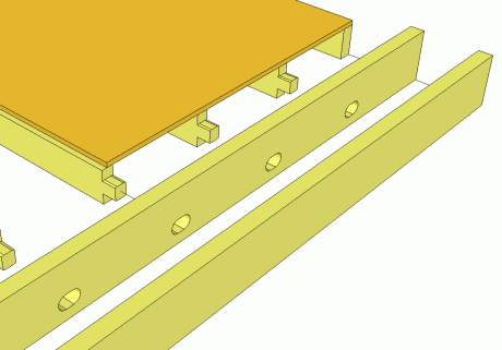 In this photo, you can see parts of the holes for the mortises for the joists. Not ideal, but