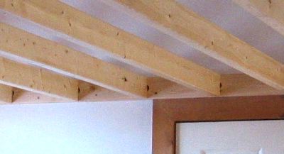 I didn't want to use up any more height than necessary, so I used 2x4's for the joists of this loft, and tenoned them into the supports, rather than resting them onto a support.